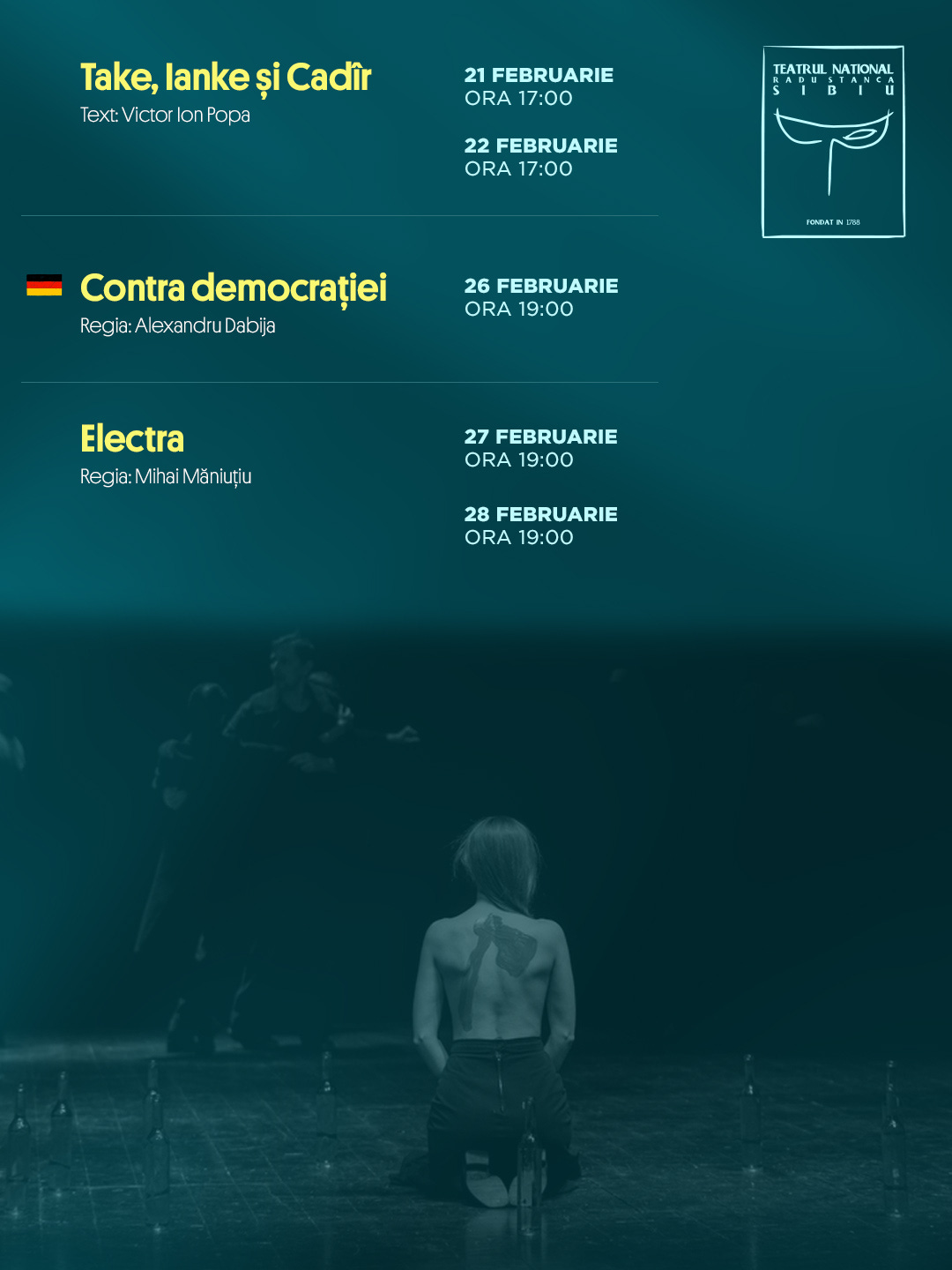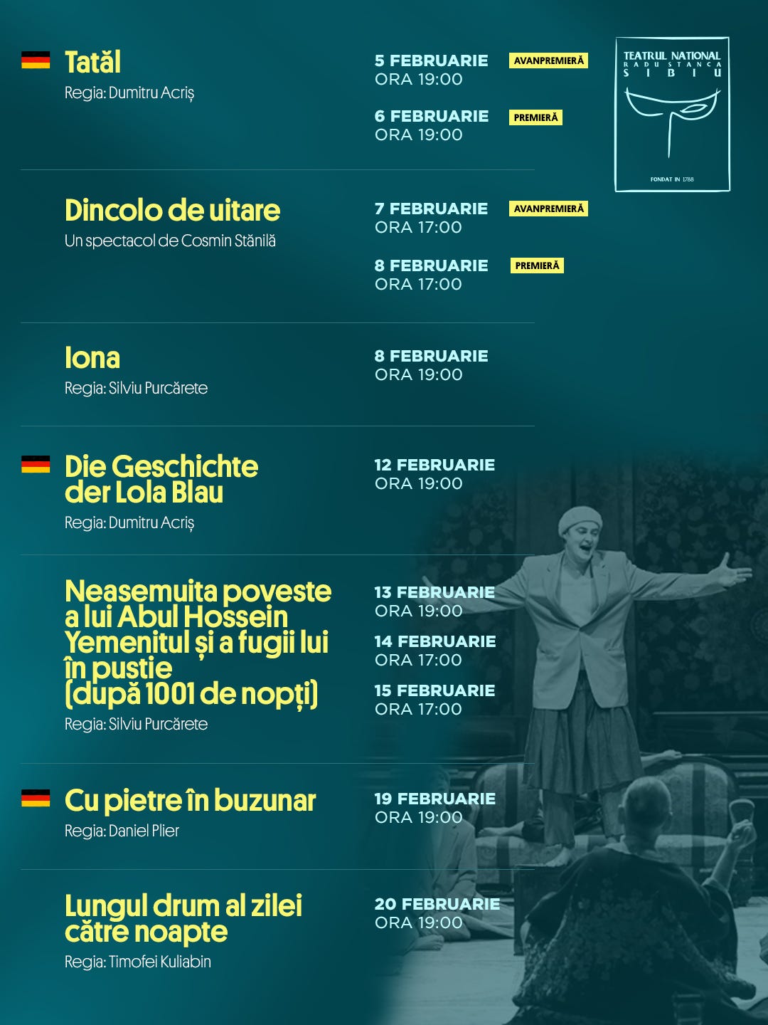 Spectacolul lui Dumitru Acriș, Tatăl, este cea mai nouă premieră a secției germane și va avea avanpremiera și premiera pe 5 și 6 februarie, de la ora 19:00.